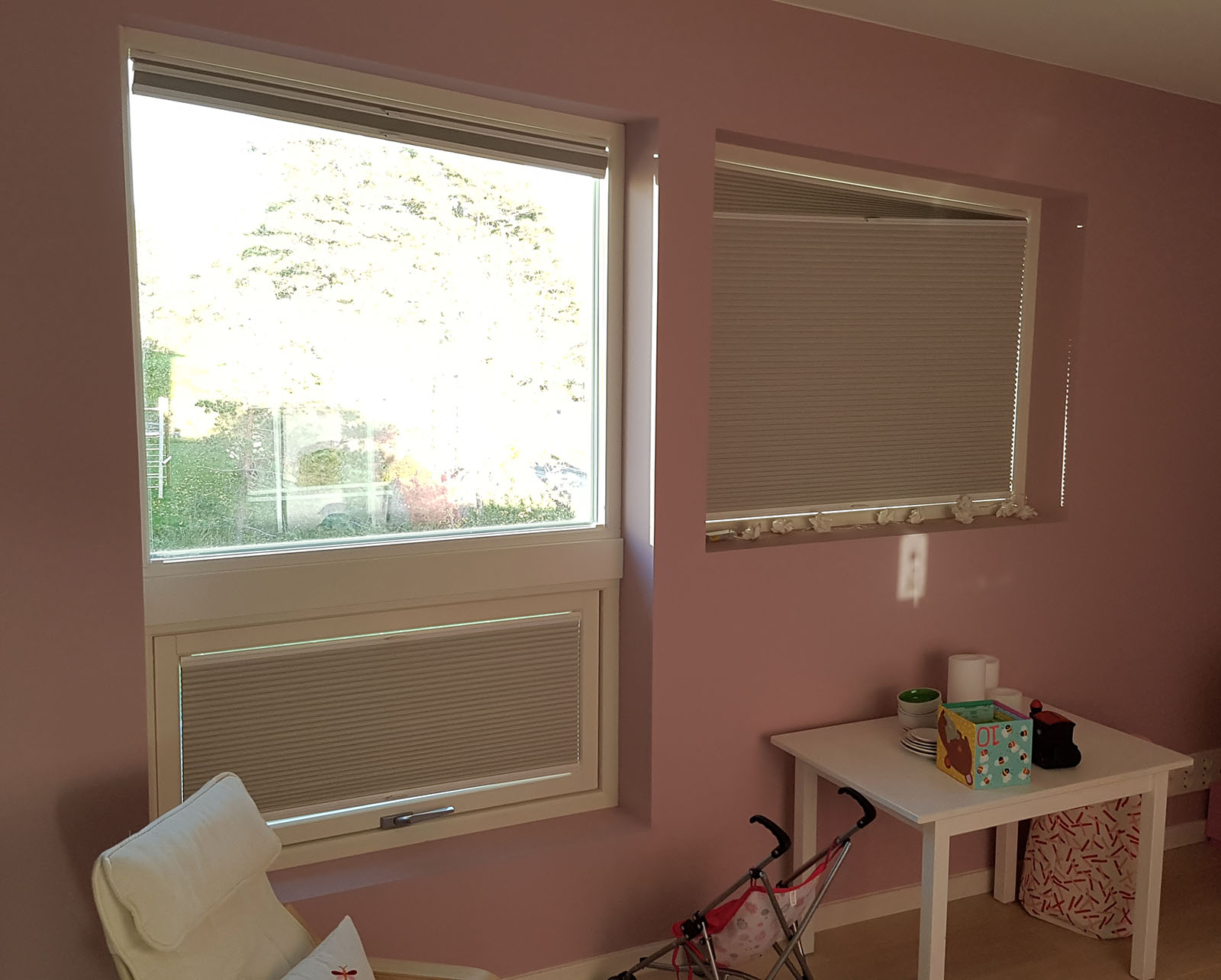 - Fritthengende tekstil med snorbetjening på valgfri side.
